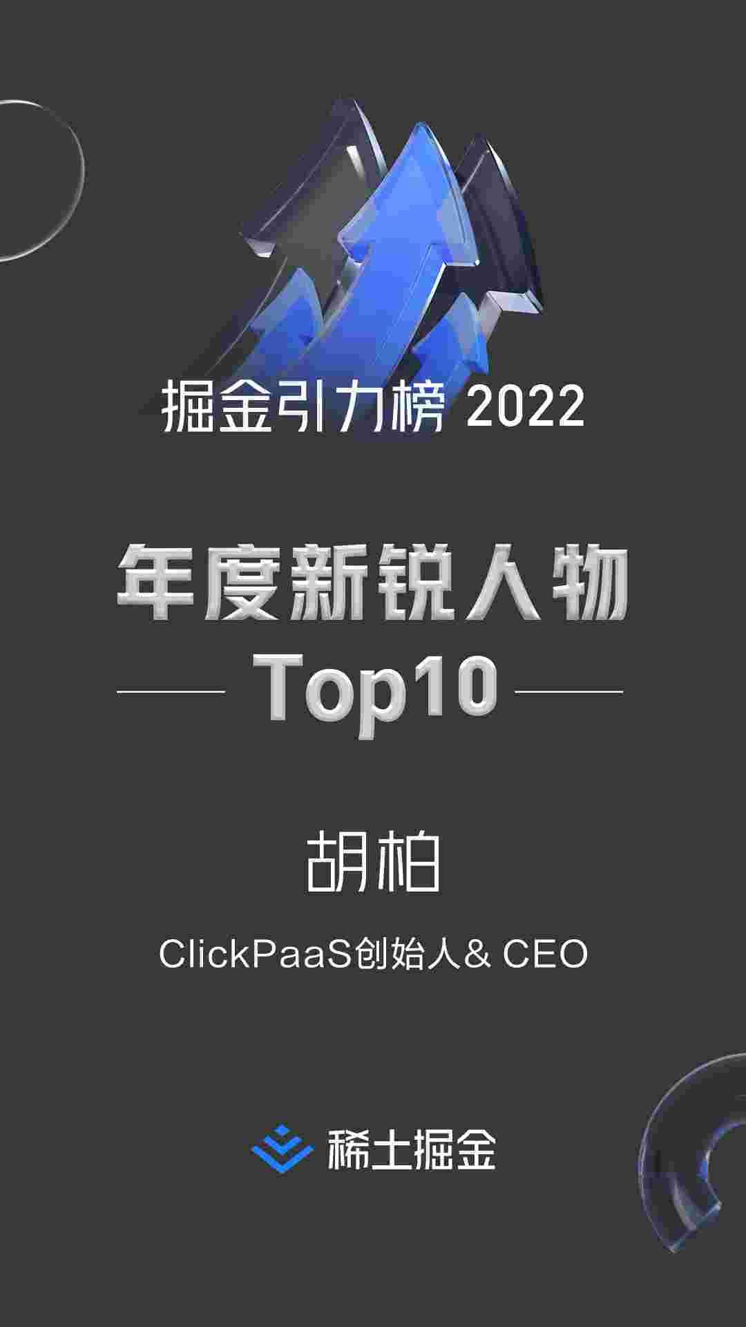 2022年1月6日,,,,,,稀土掘金社区第一届「掘金未来大会」成功举办,,,,,,,,,,,,会上发布了“2022 稀土掘金引力榜 年度新锐人物”榜单,,,,上海爱湃斯科技有限公司(简称VIVO钱包)创始人及CEO胡柏实力入选年度新锐人物TOP 10。。。。。。